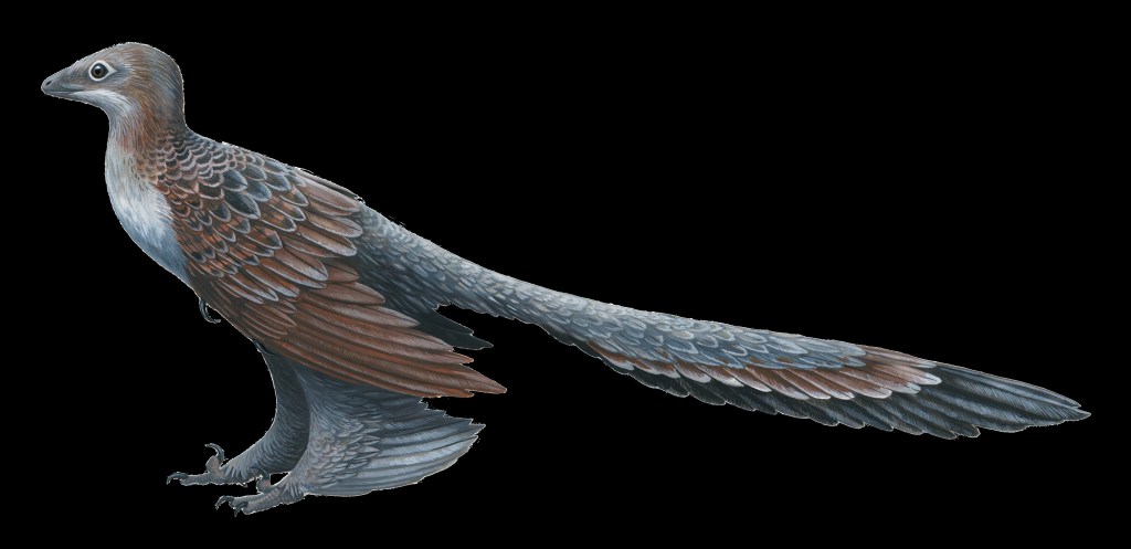 Birds evolved during the Jurassic period from two-legged, carnivorous, and often feathered dinosaurs, and are the only surviving dinosaurs. They have been classified as avian dinosaurs since the 1980’s. In other words, they are dinosaurs. Initially feathers evolved among dinosaurs for insulation, sexual display, and camouflage rather than flight. One of the early birds was Eoconfuciusornis. It lived 131 million years ago, long before the Cretaceous-Paleogene extinction event 66 million years ago. Eoconfuciusornis could fly and it had colorful feathers.
